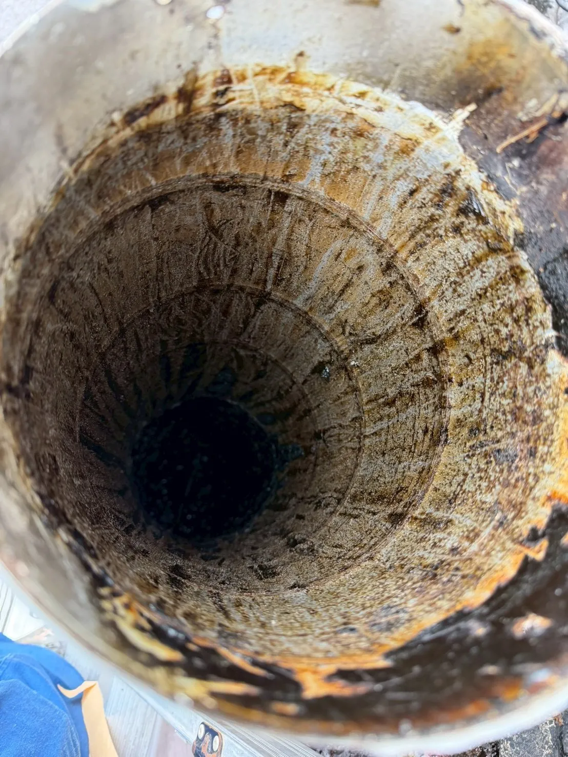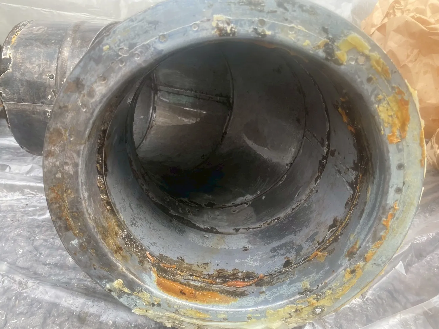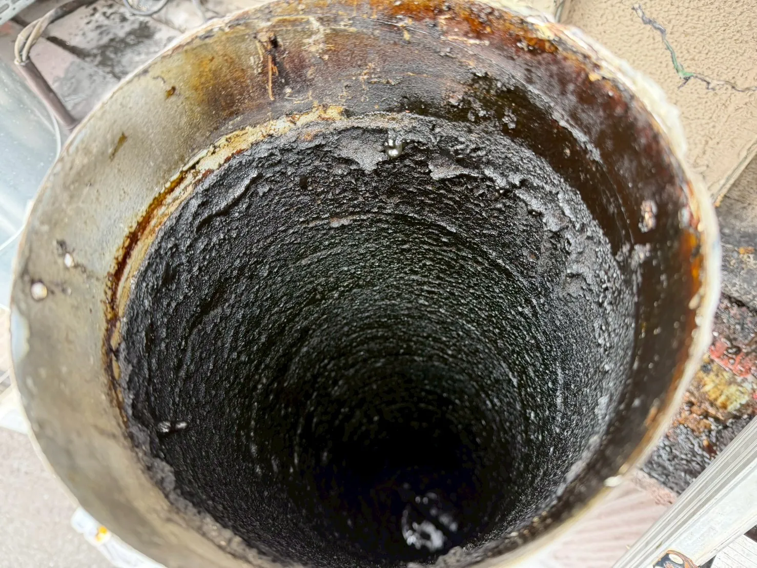 ダクト内部には固着した油脂が厚く付着している状況でした。